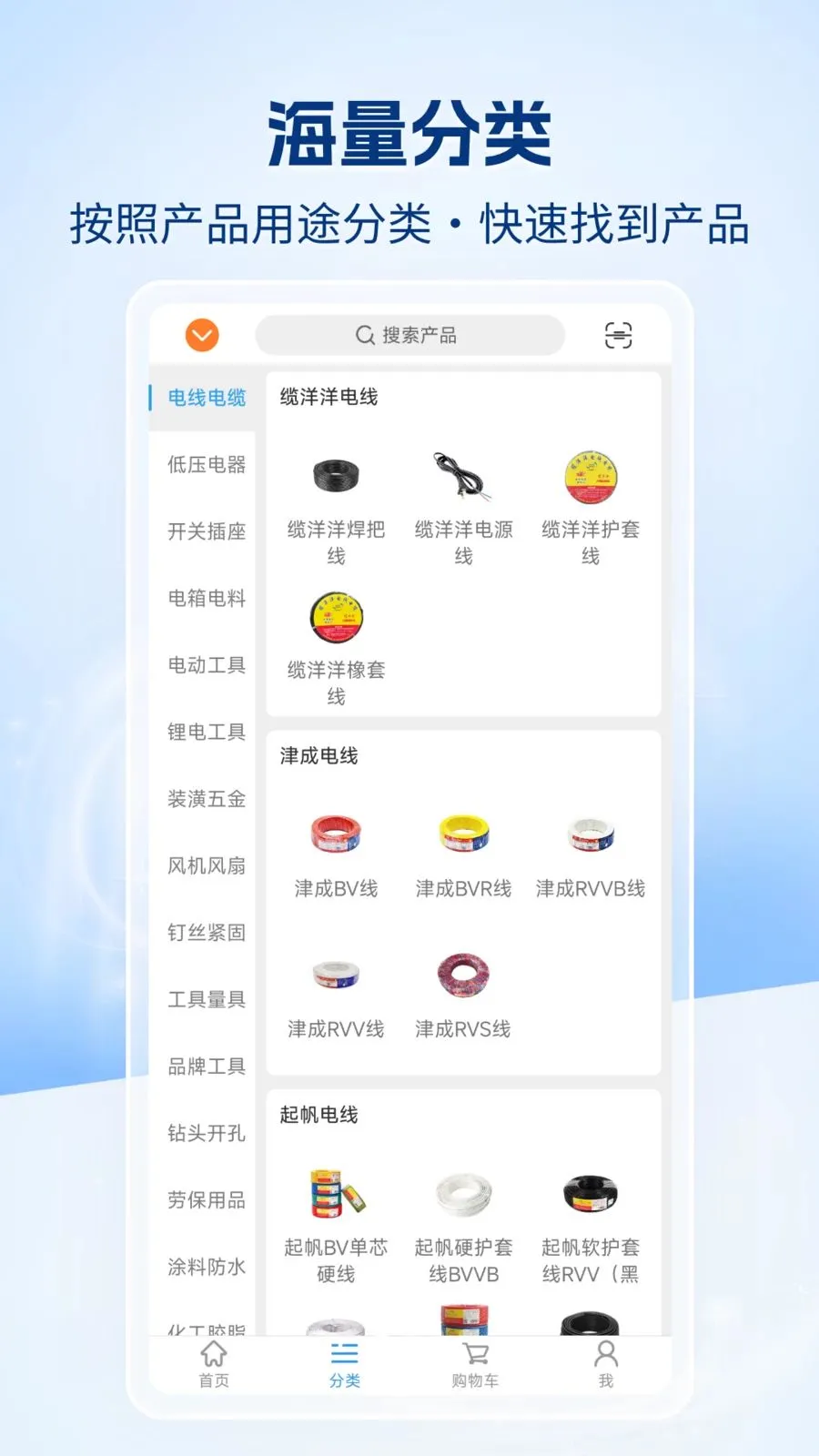 2、五金制品丰富:商城涵盖五金制品加工及销售,五金交电、金属材料、建筑及装潢材料、金属制品、塑料制品等一应俱全。