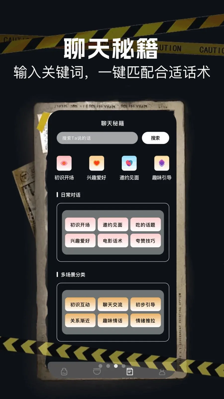 1、三大核心板块超丰富:心愿漂流瓶可邂逅美好,热梗冷笑话随手有,海龟汤海量烧脑剧本,聊天秘籍全场景高情商话术一键复制,从容应对各种对话。