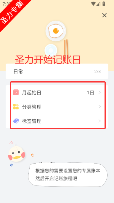 2、设置每月起始记账日期