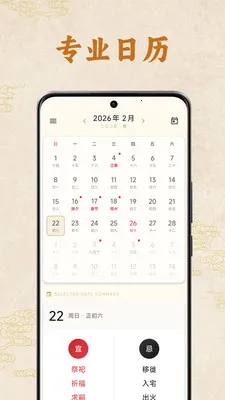 传统老黄历与现代万年历功能合一,能满足您对不同日期查询的多样需求。