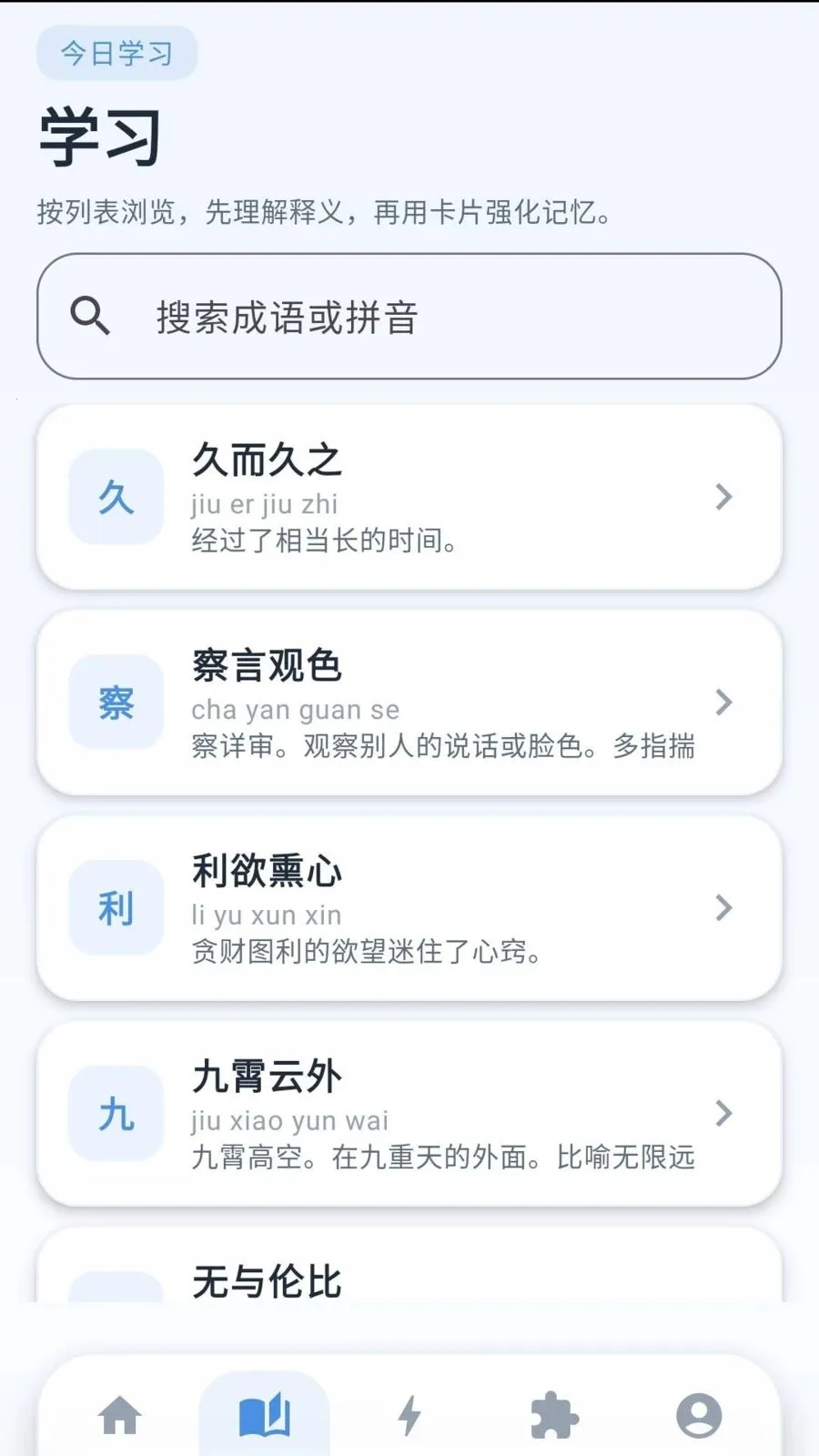 3、精准适配学习需求:无论是学生党积累知识、职场人提升表达,还是成语爱好者拓展储备,都能量身适配,让成语学习轻松又有趣。