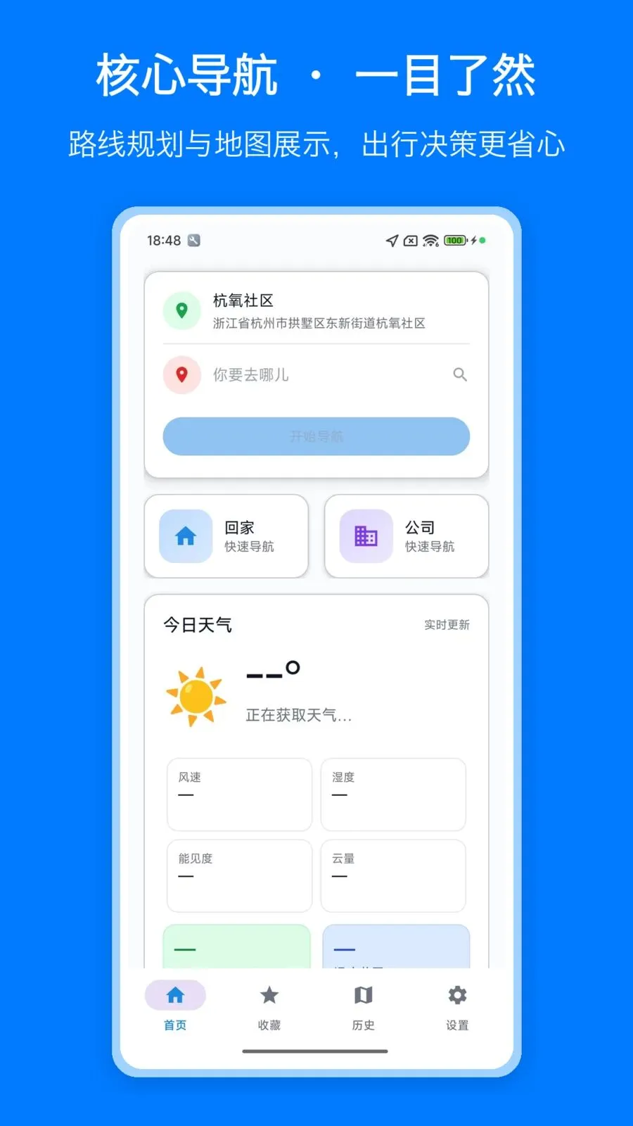首页整合今日天气、当地路况概览与快捷操作,减少切换时间成本,方便快捷。