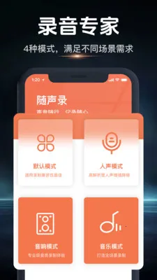 1、多种录音模式:提供默认模式、人声模式、音响模式与音乐模式,能适应不同场合需求,无论是通用录制、增强人声还是呈现清晰音乐与声音细节,都能轻松实现。