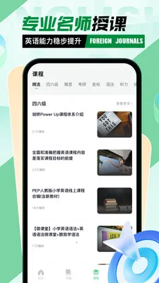 4、名师课程一站式学,四六级、雅思、考研、音标、语法、听力全体系课程,专业名师授课,碎片化时间高效提升。