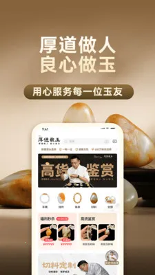 厚德载玉APP是为爱玉人打造的和田玉交易平台,有老蔡亲收亲做及严选料子,发货前严格把关并送检出证。秉持厚道做人、良心做玉宗旨,品质优选天然保真,新版本已上线。