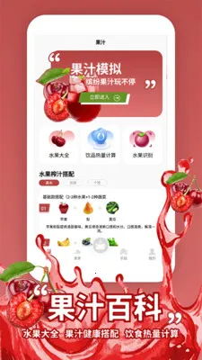 心灵手巧2026官方最新版本可模拟各种水果汁,有榨汁搭配大全及拍照热量识别工具助您管理身材。还有果汁乐园,含消消乐、大闯关、图片找茬等娱乐项目,且优化了用户体验。