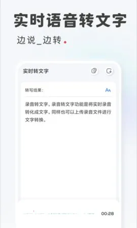 1、实时转写超高效:支持实时录音识别,能将录音实时文字提取,准确又迅捷,操作简便,录音结束后自动生成可复制导出的文字,大大节省整理时间。
