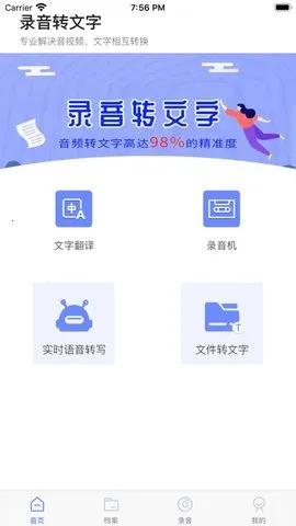 录音转文字安卓版功能强大,支持实时录音转文字、音频编辑、格式转换、加密等。能满足会议、上课等场景需求,提高效率,操作简单,还可在线翻译,保护隐私,全新版本等你下载体验。