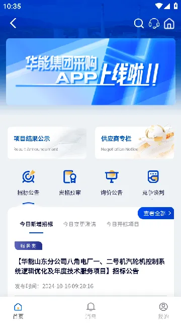 华能采购最新手机版是一款全供应链APP,整合采购交易数据等综合服务。新版优化了公告部分页面,为专家常住地退休人员增添附加上传功能,还在华能商城等数据专栏增加详情界面。
