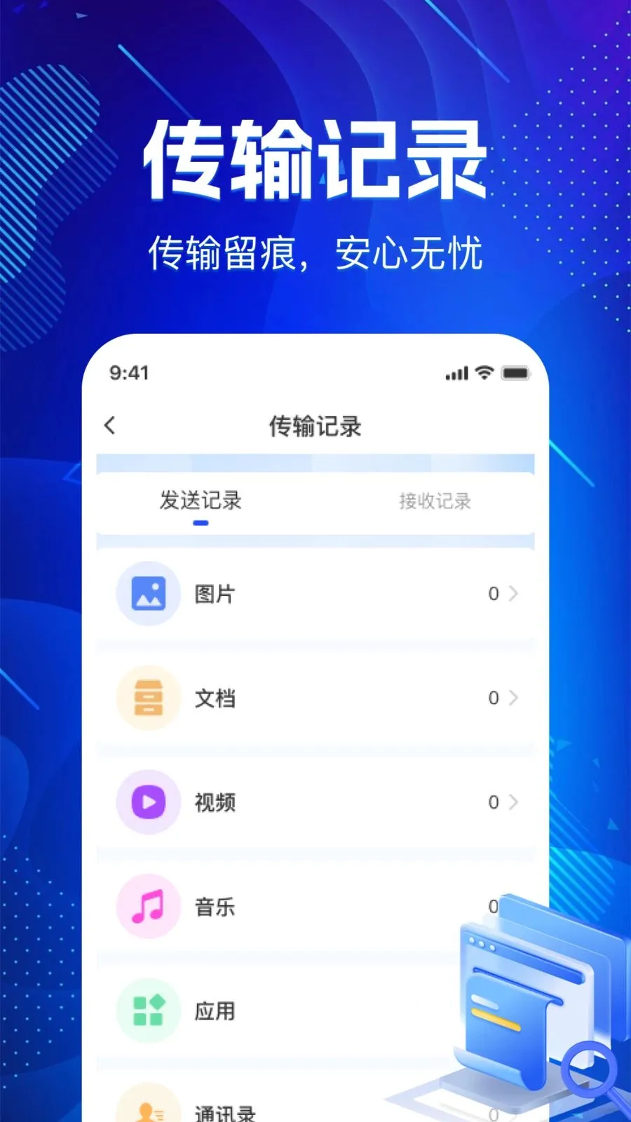 2、传输记录管理:内置功能可清晰查看文件收发情况,让数据流转清晰明了,换机更安心。