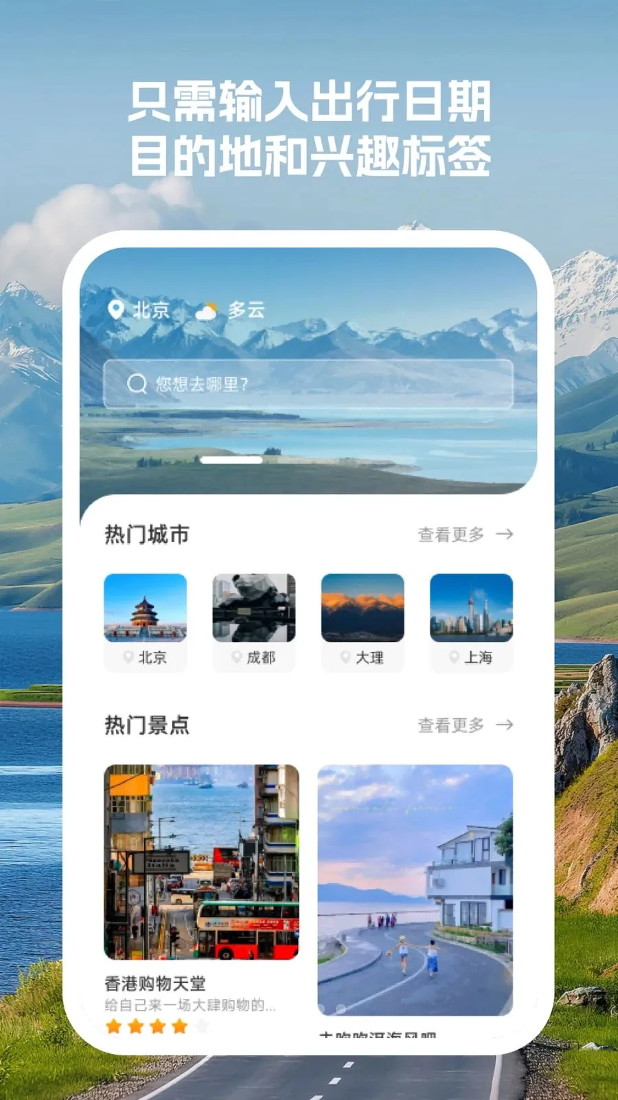 智能行程管家最新手机版是基于人工智能的深度行程规划与托管平台。输入出行日期、目的地和兴趣标签,就能生成含时间、预算、预定链接的完整PDF行程单,还能智能推荐休息点、调整游览顺序,全新版本已发布。