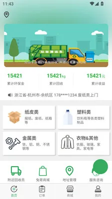 提供上门回收服务,方便查询订单,还有附近回收员上门回收,还能换实物奖励。