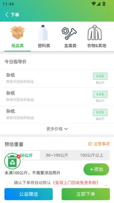 可提供纸皮类、塑料类、金属类、衣物等回收报价,方便用户了解价值。
