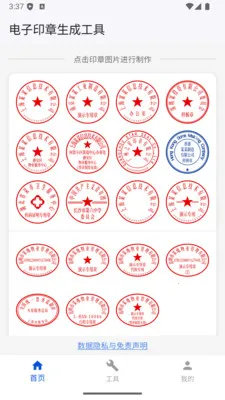 电子印章生成工具使用起来超简单!它有多样章类型,支持圆形、椭圆、矩形等多种样式,还有数十款精美模板,不管是个人私章、藏书章,还是平面设计、教育培训等场景需求都能满足。你可以高度自定义章体内容,从文字到字体样式、字号间距,再到外观效果的颜色、边框、五角星等元素,都能随心调整。制作好的章能直接盖到图片上,还能调整位置、大小和透明度。有做旧效果,让印章更具复古风格。手写签名也很流畅,支持多种笔触效果。导出方面,支持高分辨率透明背景PNG格式。而且它还能进行多种文档格式相互转换。操作简单,几步就能完成章制作;样式丰富,覆盖各类场景;专业品质,效果清晰锐利;能离线使用保护隐私;还会持续更新。有了它,轻松解决你制作电子印章及相关的各种需求!
