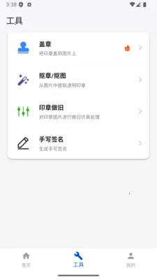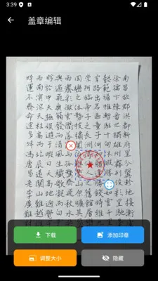 3、便捷盖章与多样效果:能直接将章盖到图片上并调整位置、大小和透明度,还有做旧效果及流畅手写签名体验。