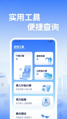 3、实用工具大集合:集成个税、退休年龄、公积金等计算及视力检测功能,覆盖多场景需求,生活办事更省心。