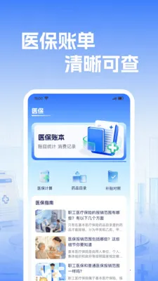 p2:它有医保账本,支持录入门诊费、医药费、住院费等消费记录,能智能分类,手动录入也方便,还可查询明细,生成月度账单与消费分析,告别账单零散混乱。
