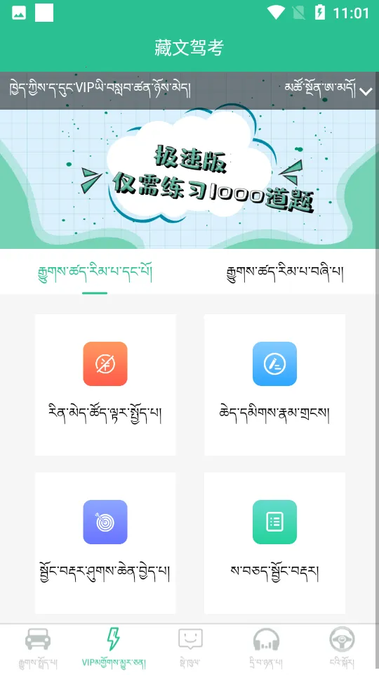 - **多样化学习体验**:科目一和科目四理论考试包含模拟考试、随机练习、强化练习、考试统计、考试记录、错题集等经典功能。还提供语音读题功能,方便不懂藏文和汉文的用户学习理论驾驶考试。