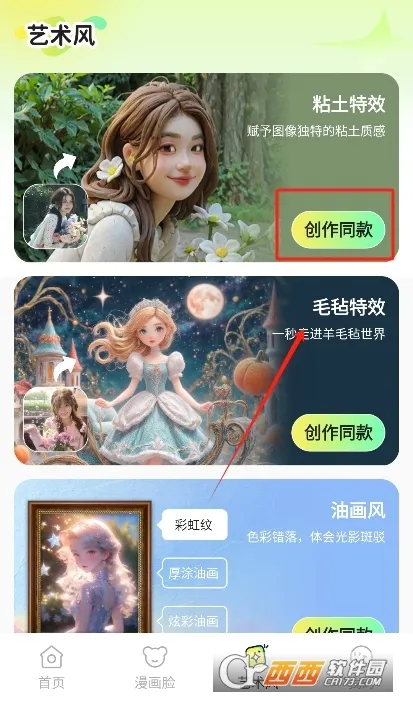 p>进入漫画脸或艺术风专区,能体验更多风格化特效。
