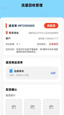 司机端能便捷承接全量货运任务,清晰查看待取货、运输中、待签收等全状态订单详情,掌握货品信息、运输重量、收发货地址、订单时效等完整数据。还支持退货回流订单专项管理,规范完成现场取证、货物核验、装车确认等全流程操作。