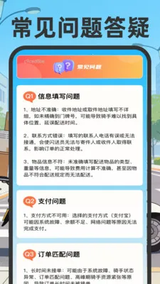 同城骑手专送APP实用便捷,可快速下单同城取送件,设有常见问题答疑避坑,还有闹钟提醒、手机便捷签名、一键查订单等功能,轻松搞定同城取送琐事,节省时间。
