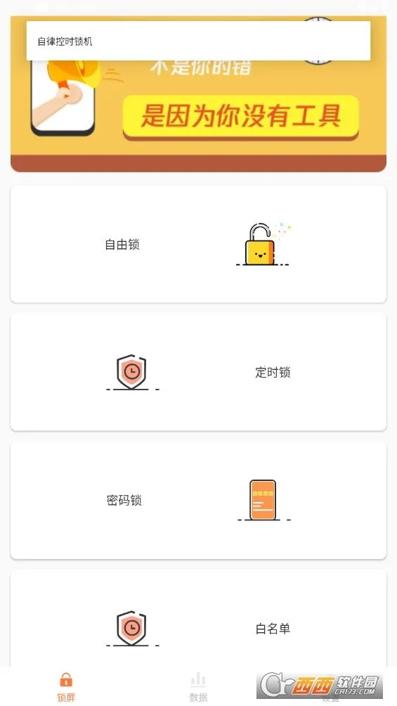自律控时锁机是一款时间管理工具,能帮用户缓解手机依赖,提高效率。提供多种锁屏方式,可自定义时长等,支持白名单设置,自动记录锁机情况并生成报告,还有屏保、音乐等,界面简洁无广告。
