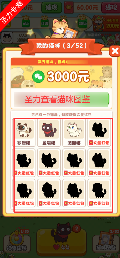 2、查看猫咪图鉴,解锁全部猫咪获得大量奖励