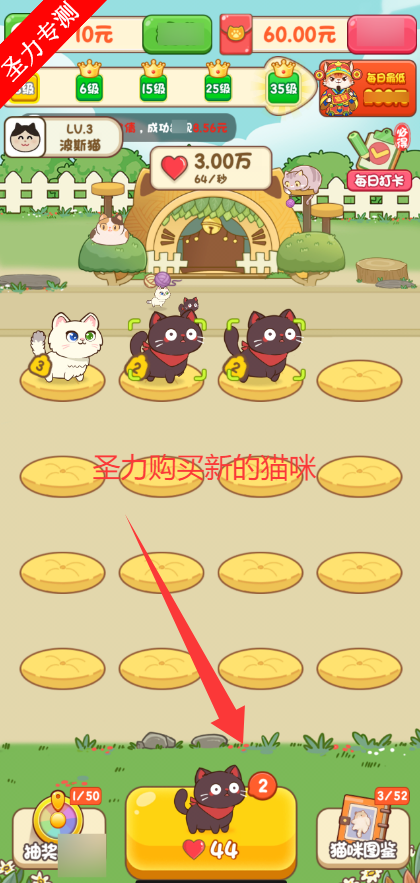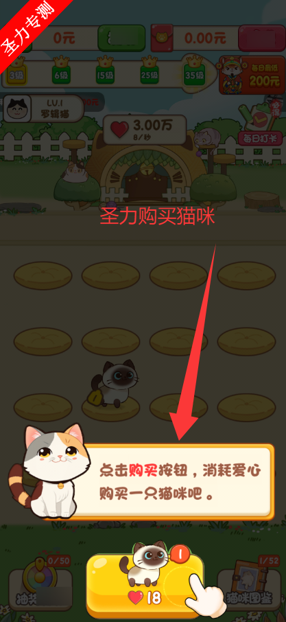 1、点击使用红心购买猫咪