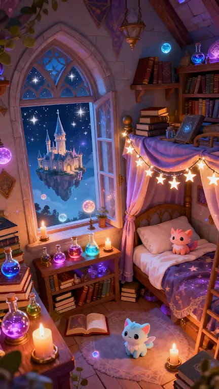 唯美画风与沉浸式氛围:采用柔和梦幻美术风格,画面设计细腻,色彩搭配温暖。古老建筑、神秘教室及魔法物品极具艺术感,搭配轻松愉快音乐和自然音效,让玩家沉浸在魔法美妙氛围中。