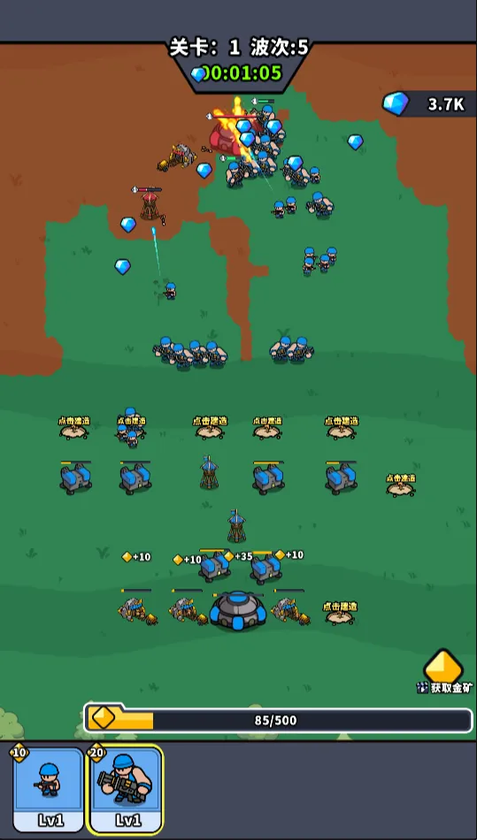 2. 三层阵地布局:战场分三条战线,前排可建箭塔或佣兵营,中层调配兵种,后排金库是经济核心。合理布局与兵种搭配,能有效掌控战局,稳健经济是战略基础。