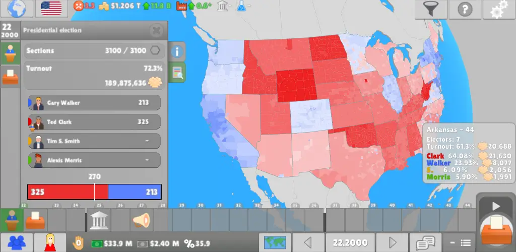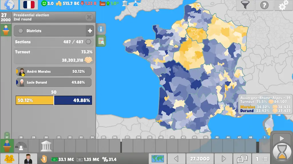 2、策略与决策深刻体验:玩家不仅要赢选举,还得聪明管理政党,控制培养成员,权衡利弊制定战略,这些选择直接影响党内权力结构和外部政治环境。