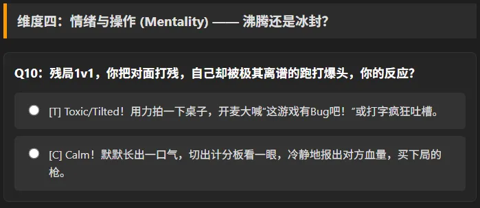 CSTI官方职业性格测试2026官方最新版本,依据真实打法记录问题选项,通过测试能知晓自己与哪位传奇职业选手契合,助您深入了解自身职业性格特点。