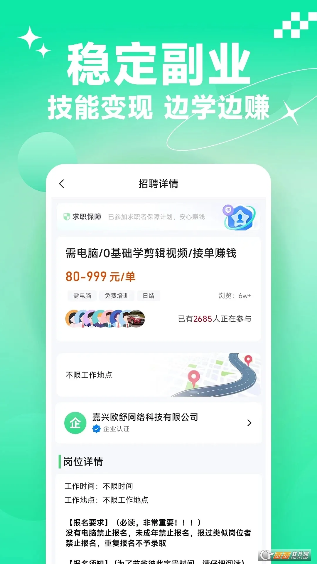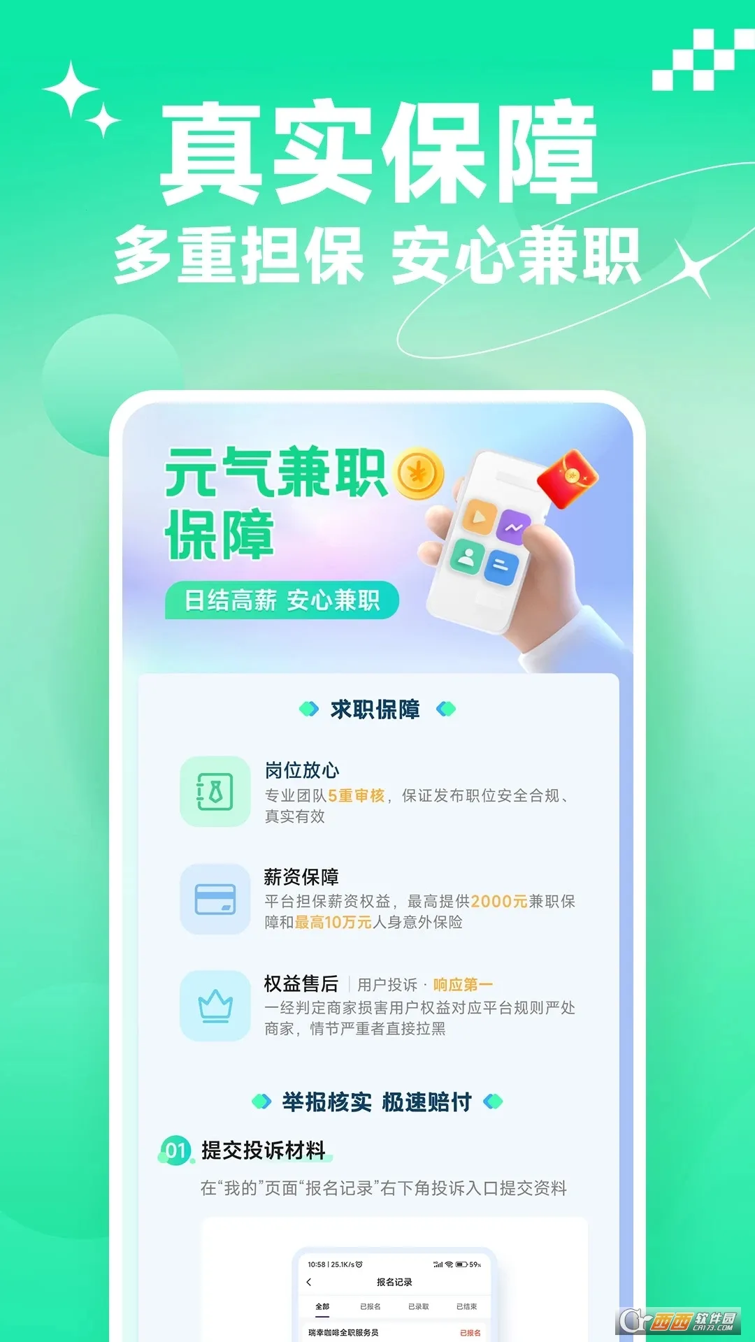 4. 软件涵盖多个领域、多种工作类别,提供大量真实兼职招聘,还有健全保证服务。