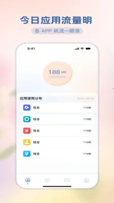 锐驰流量魔方,能帮你轻松掌控手机流量。它可以清晰展示各APP的耗流情况,让你一眼看清每个应用消耗了多少流量,从此告别流量使用不明的困扰。有了它,你能合理规划流量使用,避免超支。比如,你可以根据流量消耗情况,决定是否继续使用某个高耗流应用,或者在流量紧张时,优先关闭那些不必要的后台程序。而且,它还能记录今日应用时长,让你对自己手机使用时间有更精准的把握,做到使用有分寸。无论是流量管理还是手机使用时长管理,锐驰流量魔方都能为你提供便利,让你的手机使用更加科学合理,轻松解决流量和使用时长方面的实际问题,是你手机管理的好帮手。